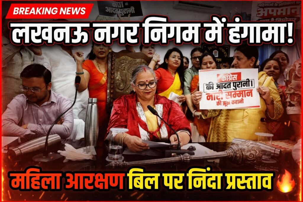 लखनऊ, 23 अप्रैल 2026: लोकसभा में नारी शक्ति वंदन अधिनियम संशोधन विधेयक (महिला आरक्षण बिल) के गिरने के बाद उत्तर प्रदेश की राजनीति गरमा गई है। इस मुद्दे को अब शहरी स्थानीय निकायों तक ले जाने की भाजपा की रणनीति के तहत आज लखनऊ नगर निगम की विशेष सदन बैठक में भारी हंगामा हुआ। बैठक में भाजपा ने सपा और कांग्रेस के खिलाफ निंदा प्रस्ताव पारित कर दिया, जबकि विपक्षी पार्षदों ने इसे “अवैध” बताते हुए जमकर विरोध किया।
